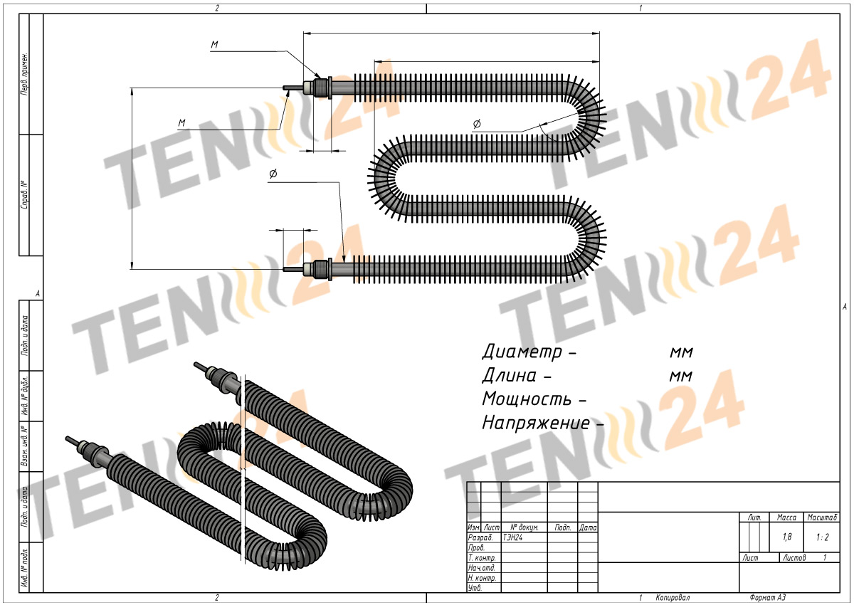 Компания ТЭН 24 специализируется на изготовлении оребренных ТЭНов прямой или U-образной формы по индивидуальным параметрам, однако у нас вы можете купить оребренные ТЭНы и стандартных моделей для большинства электрокалориферов.