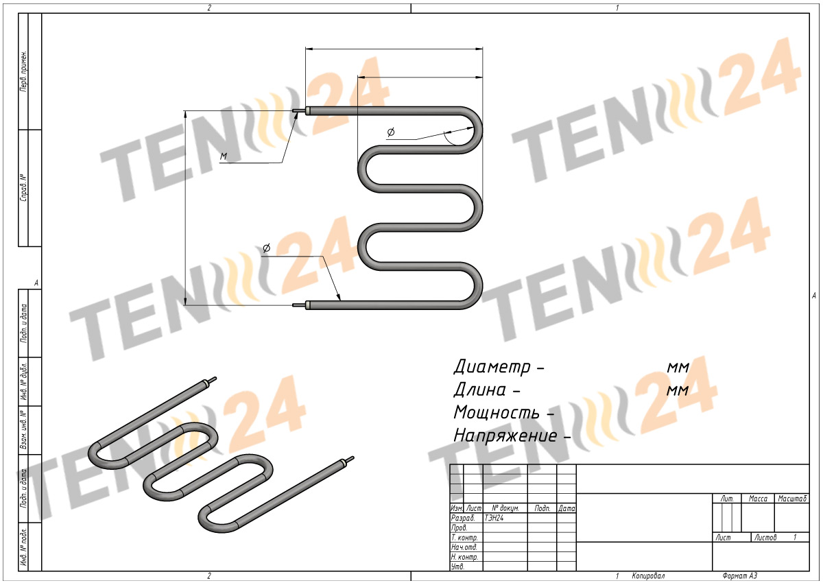 Трубчатые нагреватели ТЭН 24 доступны в стандартных размерах, но преимущественно изготавливаются по индивидуальному заказу в соответствии со спецификациями и чертежами заказчика. Компания ТЭН 24 обладает большим опытом, проектными и производственными мощностями, способными удовлетворить все ваши требования.