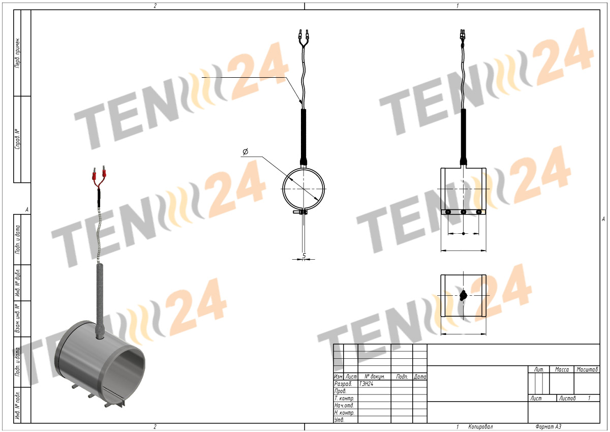 Компания ТЭН 24 занимается изготовлением индивидуальных кольцевых нагревателей, поэтому мы можем сделать нагревательный элемент с учетом всех конструктивных особенностей нагреваемой поверхности.