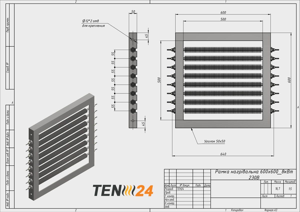 Типичные рамки тепловых завес, которые мы производим, имеют корпус в виде рамки из нержавеющей стали, со специальными выемками для установки наших трубчатых нагревателей с оребрением. ТЭНы также изготавливаются под заказ с нужными вам параметрами. Мы готовы предоставить вам консультацию по выбору подходящих параметров для вашей тепловой завесы и произвести ее изготовление в кратчайшие сроки.