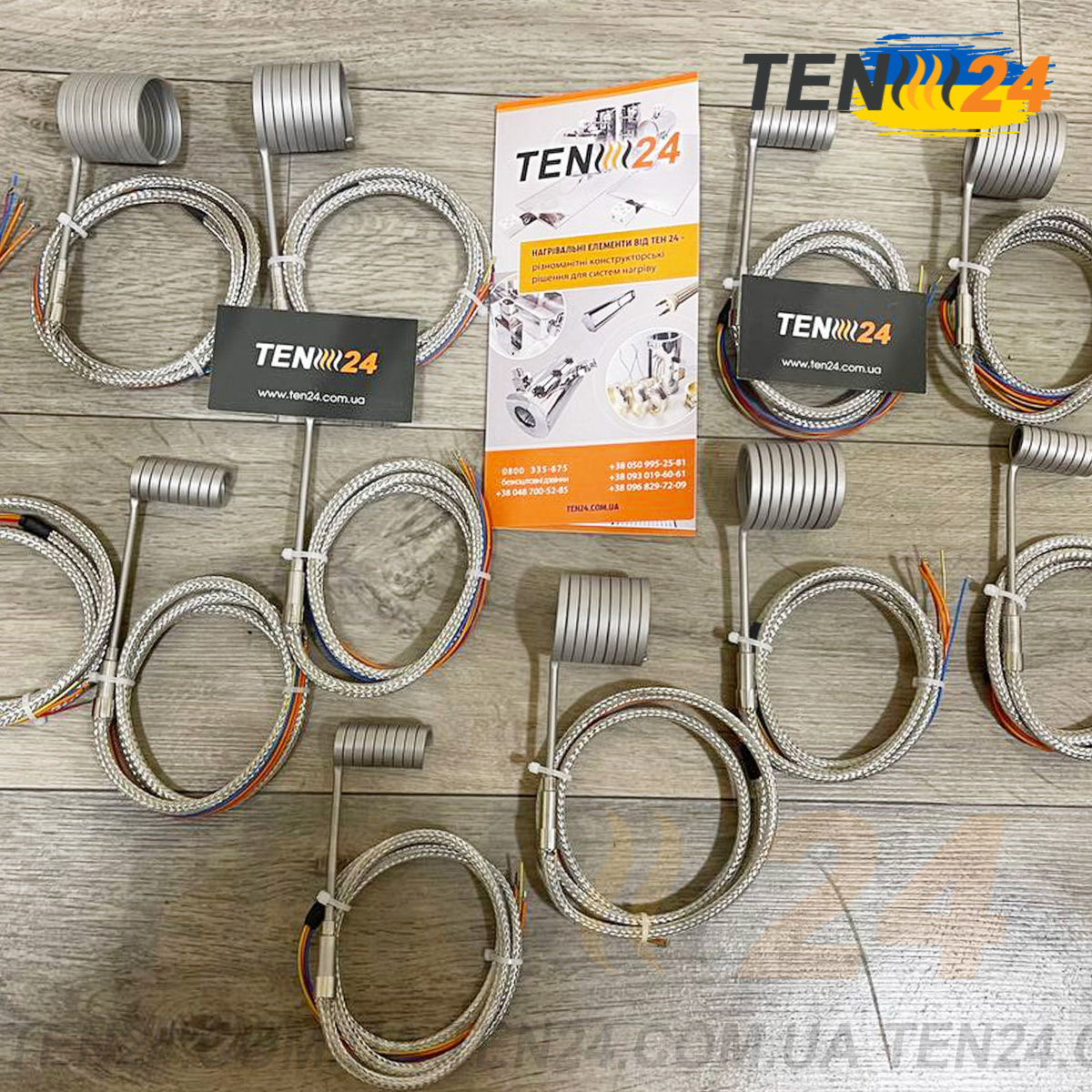 Купить спиральные нагревательные элементы в компании ТЭН 24 можно прямо на сайте или по телефону. Мы изготовим индивидуальный спиральный нагреватель специально для вас по указанным параметрам. Возможно оснастить нагреватель встроенной термопарой или изготовить спиральный нагреватель в металлическом кожухе для дополнительной защиты и обжимки.