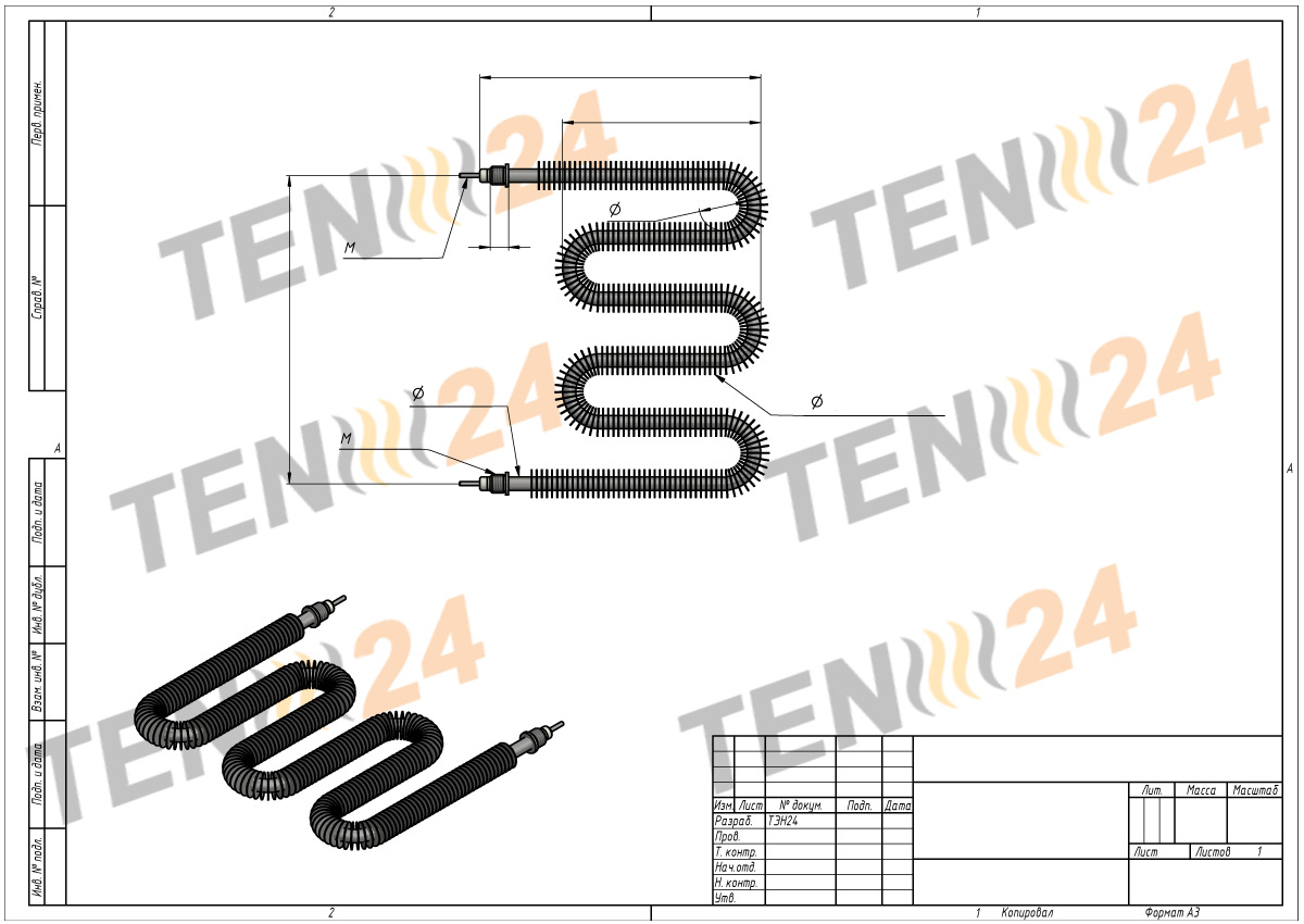 TEN 24 specializes in manufacturing straight or U-shaped finned heating elements according to individual specifications, as well as providing standard models for most electric heaters. Proper installation of finned heating elements requires the use of special clamps, brackets, flanges, or brackets to avoid damaging the heater. Mechanical or soldered fittings must be used to fix the heating element, and contact leads and bushings should not be used.