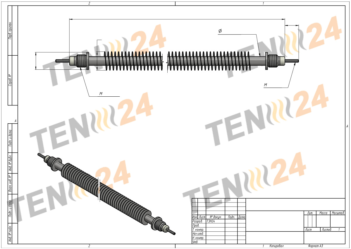 Finned heating elements are commonly used to heat moving air or gas mixtures in various industrial heating devices like electric heaters, heat guns, convectors, and air heaters. These heating elements have much higher heat transfer rates than regular heating elements for air, allowing for a reduction in the power load on the heating surface by up to 2.5 times.