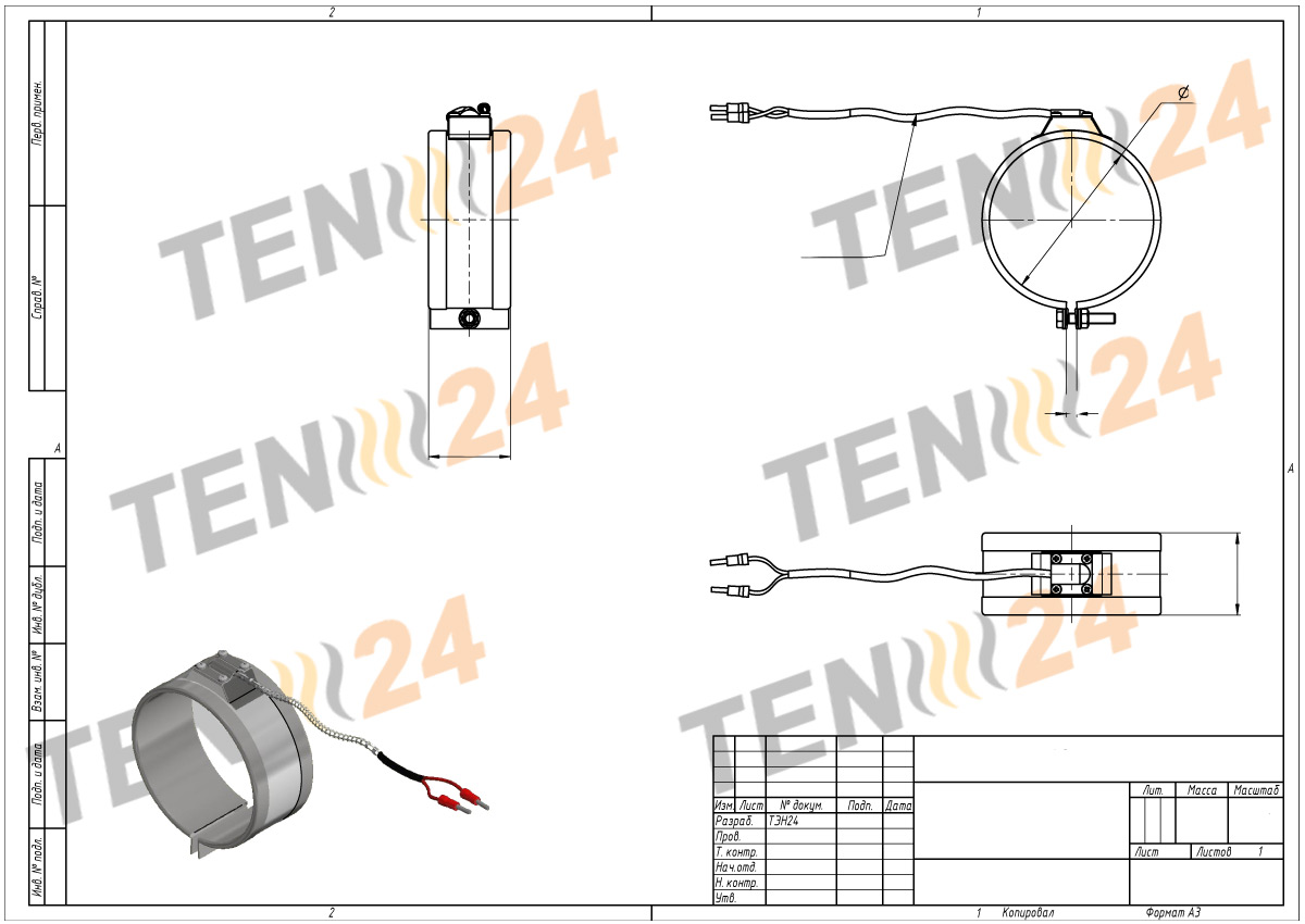 The TEN 24 company produces individual Band Heaters, so we can make a heating element taking into account all the design features of the heated surface. Mica-band heaters can be made with cutouts of any shape, with all kinds of fasteners and ties.