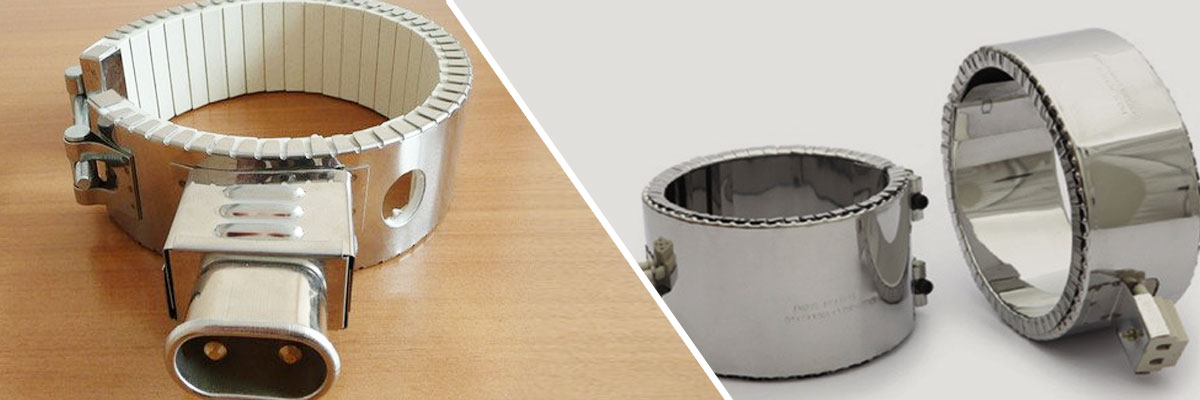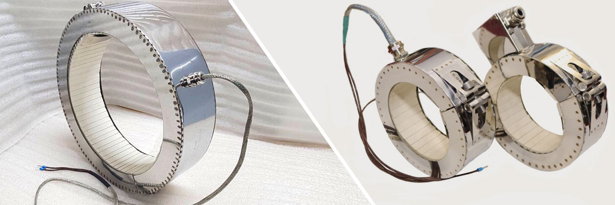 Керамічні кільцеві нагрівачі також встановлюються на циліндричну поверхню обладнання. Елемент нагрівання - реостатний дріт, ізоляцію забезпечують керамічні «кісточки». Високоякісна нержавіюча сталь запобігає механічні пошкодження внутрішньої оснастки нагрівача. Максимальна температурна подача вказаного пристрою становить 500 °С. Керамічні пристрої по нагріванню хомутового типу можуть бути виготовленими у вигляді кільця або півкільця з нагрівальним елементом у внутрішній або зовнішній частині. Для більш зручного монтажу можливе додавання додаткових вирізів і отворів.