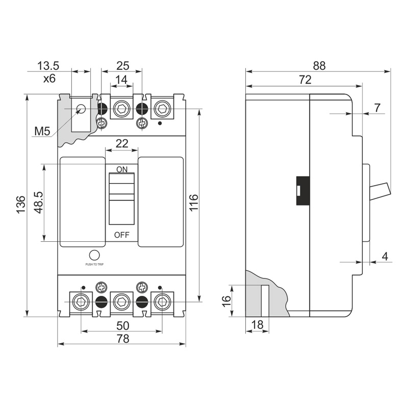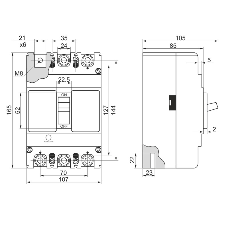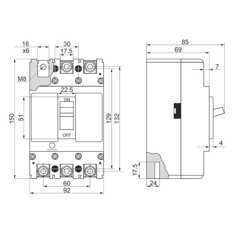 Габарити автоматичного вимикача CNC |