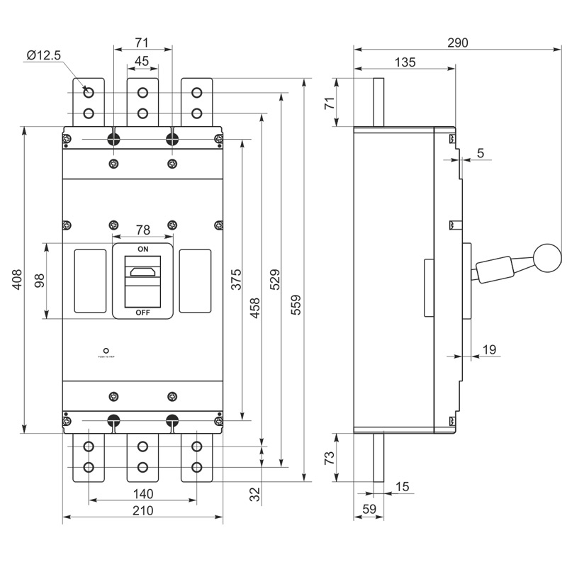 | Струм (номінальний) In, А | 400, 500, 530 | ||||