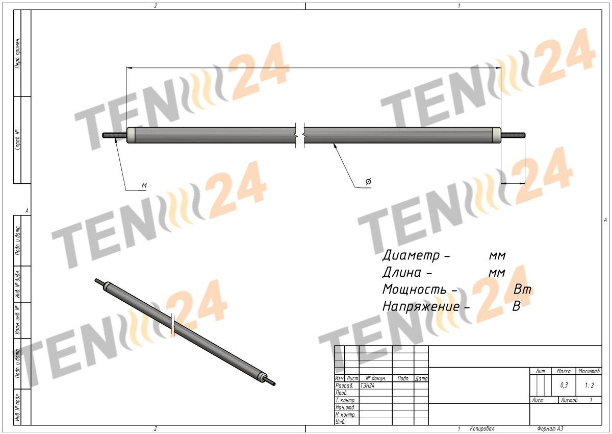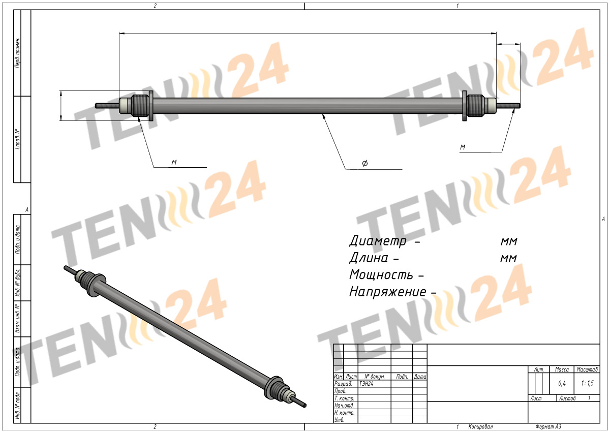 Трубчасті нагрівачі ТЕН 24 доступні в стандартних розмірах, але переважно виготовляються за індивідуальним замовленням відповідно до специфікацій та креслень замовника. Компанія ТЕН 24 має великий досвід, проектні та виробничі потужності, здатні задовольнити всі ваші вимоги.