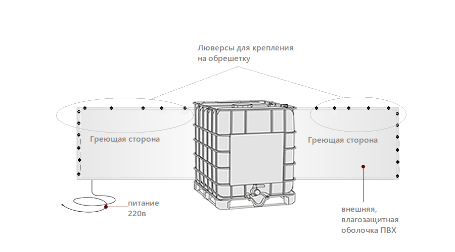 Термомат для розігріву вмісту в бочці - це гнучкий мат, який призначений для нагріву, розігріву, підтримки температури й в'язкості рідин та інших термічних процесів в циліндричної ємності. Температура нагріву до +80 С. Обігрів заснований на інфрачервоному випромінюванні нагрівального елементу, що передається до поверхні тари і її вмісту. Незаперечні переваги термоелектроматов низькі енерговитрати, рівномірний розподіл тепла, не утворює зон локального перегріву, багаторазове застосування, легко монтуються і експлуатуються. Повністю безпечні в застосуванні як в приміщенні, так і за його межами. Термомaт повністю готовий до експлуатації, оснащений нагрівальним елементом, теплоізоляцією, датчиками регулювання температури і водонепроникною оболонкою.