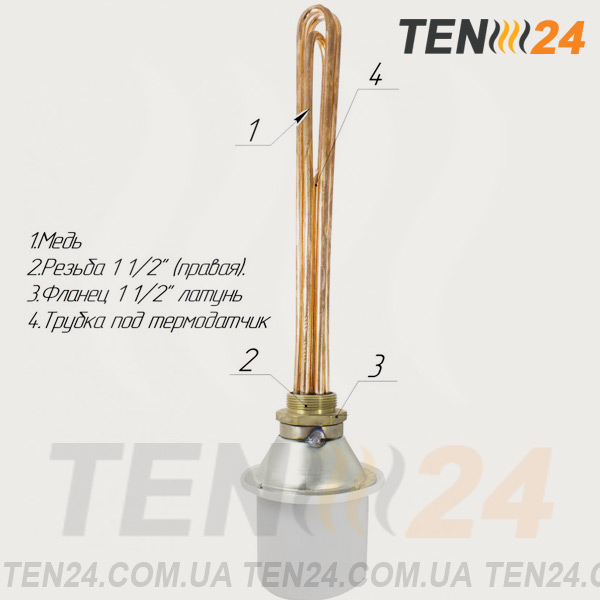 гріючий ТЕН виготовляється компанією ТЕН 24 в стандартних розмірах, але при необхідності ми можемо виготовити ТЕН на замовлення з іншими параметрами. нагрівач має наступні характеристики: