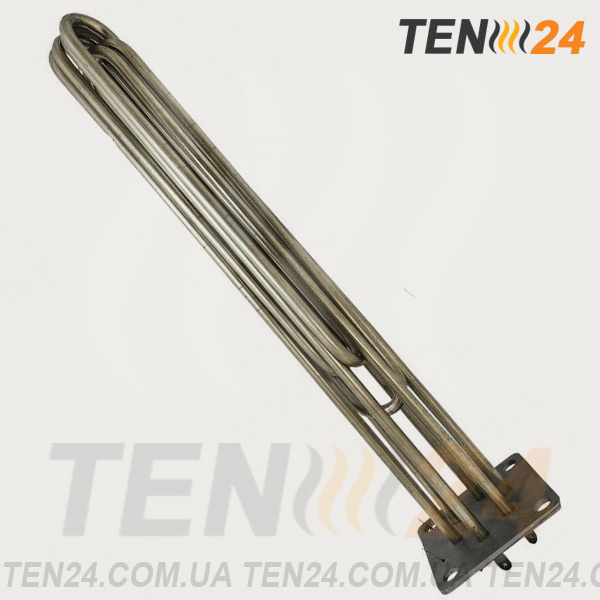 ТЕН виготовлений в компанії ТЕН 24 з потужністю 9000 Вт, напругою 230 / 380 В, розмірами довжина ТЕНа 390 мм, розмір пластини 100 х 100 мм, варіантом виведення живлення "2. Пелюстки під гвинт".
