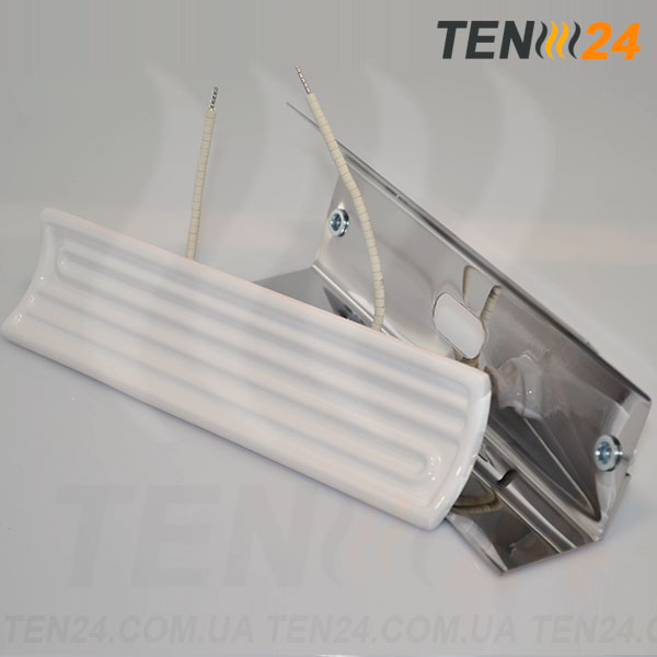 Нагрівач виготовлений в компанії ТЕН 24 з потужністю 100 - 1000 Вт, напругою 220 В, варіантом виведення живлення "Термостійкі дроти в ізоляції з керамічних бус".