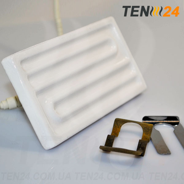 Нагрівач виготовлений в компанії ТЕН 24 з потужністю 50 - 500 Вт, напругою 220 В, варіантом виведення живлення "Термостійкі дроти в ізоляції з керамічних бус".