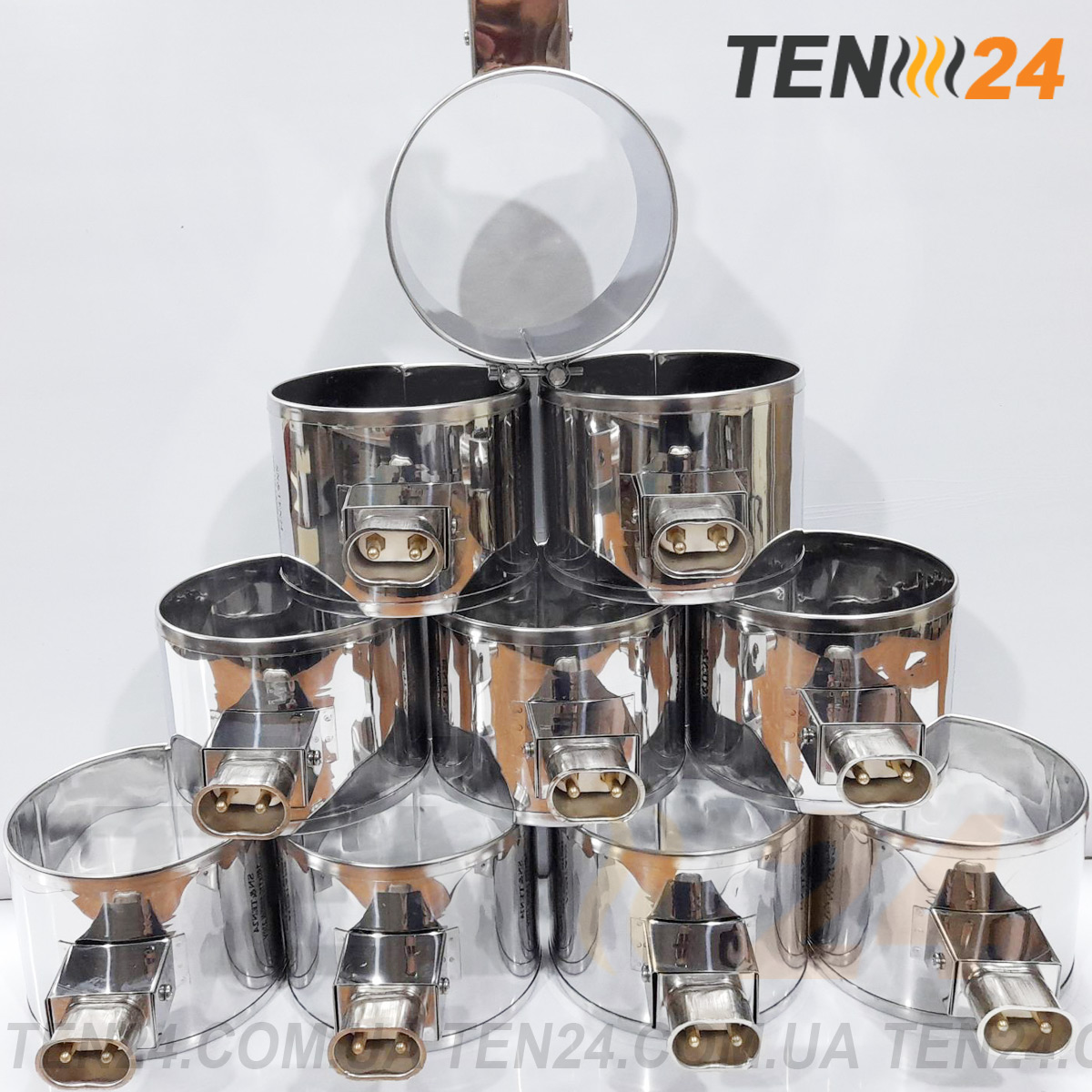 Нагрівач виготовлений в компанії ТЕН 24 з потужністю 1200 Вт, напругою 220 В, розмірами діаметр 140 мм, висота 110 мм, варіантом виведення живлення "10. Вилка (роз'єм WG2) на коробі".
