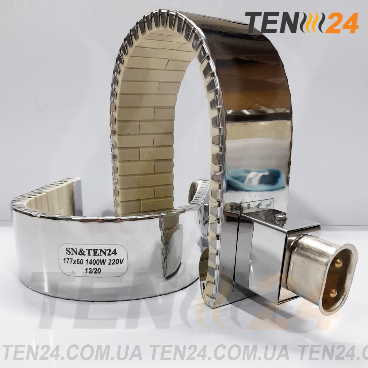 ТЕН виготовлений в компанії ТЕН 24 з потужністю 1400 Вт, напругою 220 В, розмірами діаметр 177 мм, висота циліндра 60 мм, варіантом виведення живлення "Варіант 10. Вилка (роз'єм WG2) на коробі".