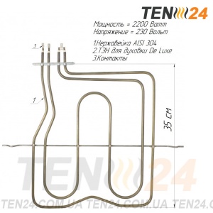 ТЕН для духовки De Luxe 2,2 кВт від виробника ТЕН 24 можна купити на даній сторінці просто заповнивши форму змовлення. У комментарії ви можете вказати інші характеристики , а також відправити своє креслення. Для отримання консультації дзвоніть нам по телефонам, вказаним на сайті або пишіть у вайбер або на электронну поштову скриньку.