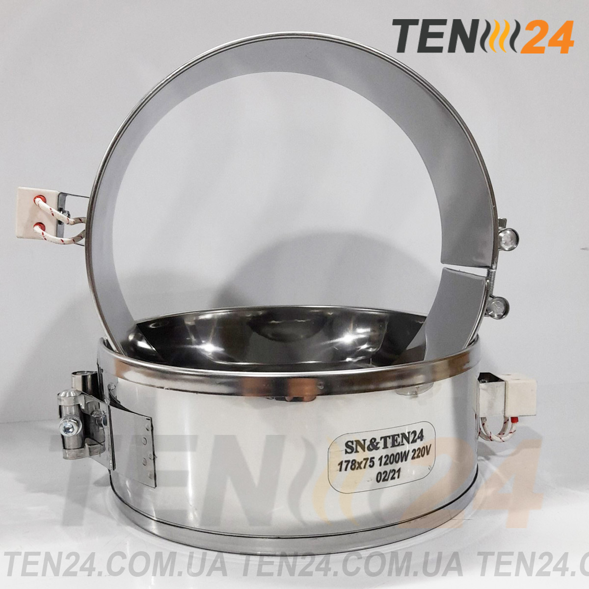 Гріючий елемент виготовлений в компанії ТЕН 24 з потужністю 1200 Вт, напругою 220 В, розмірами діаметр 178 мм, висота 75 мм, варіантом виведення живлення "Варіант 5. Клемна керамічна колодка".